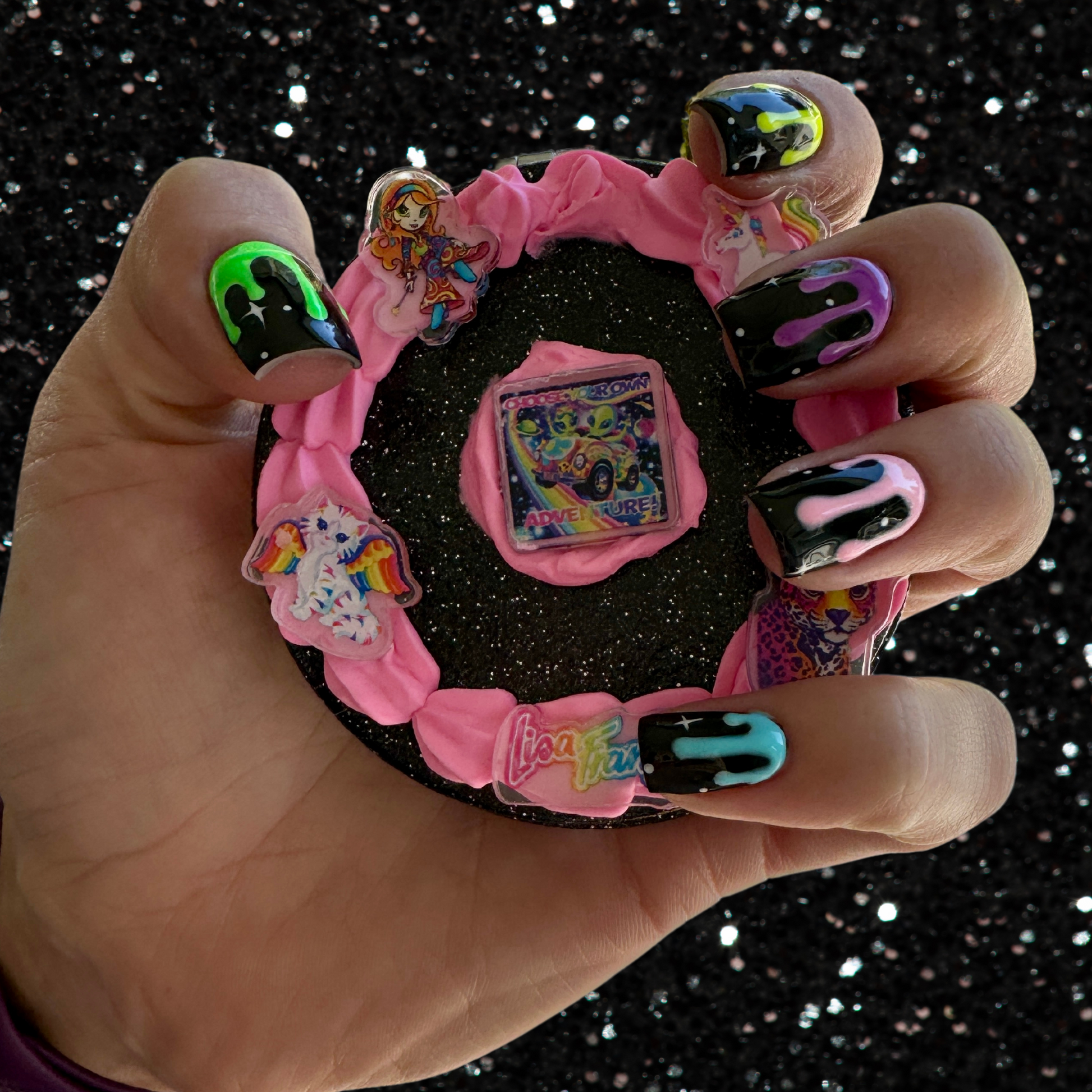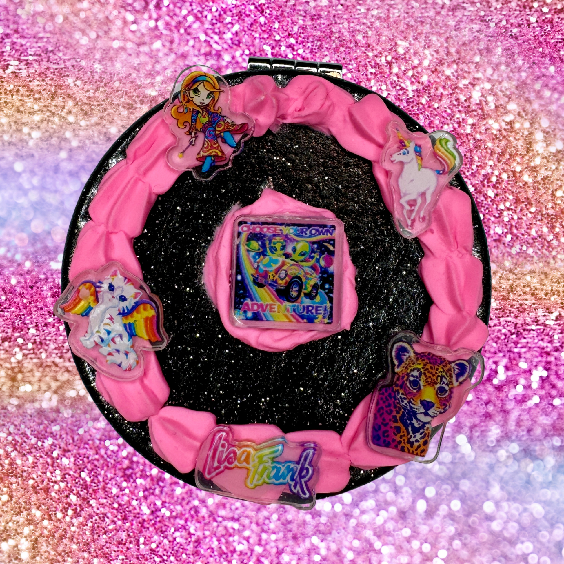 90s Black and Pink Fake Cake Compact Mirror