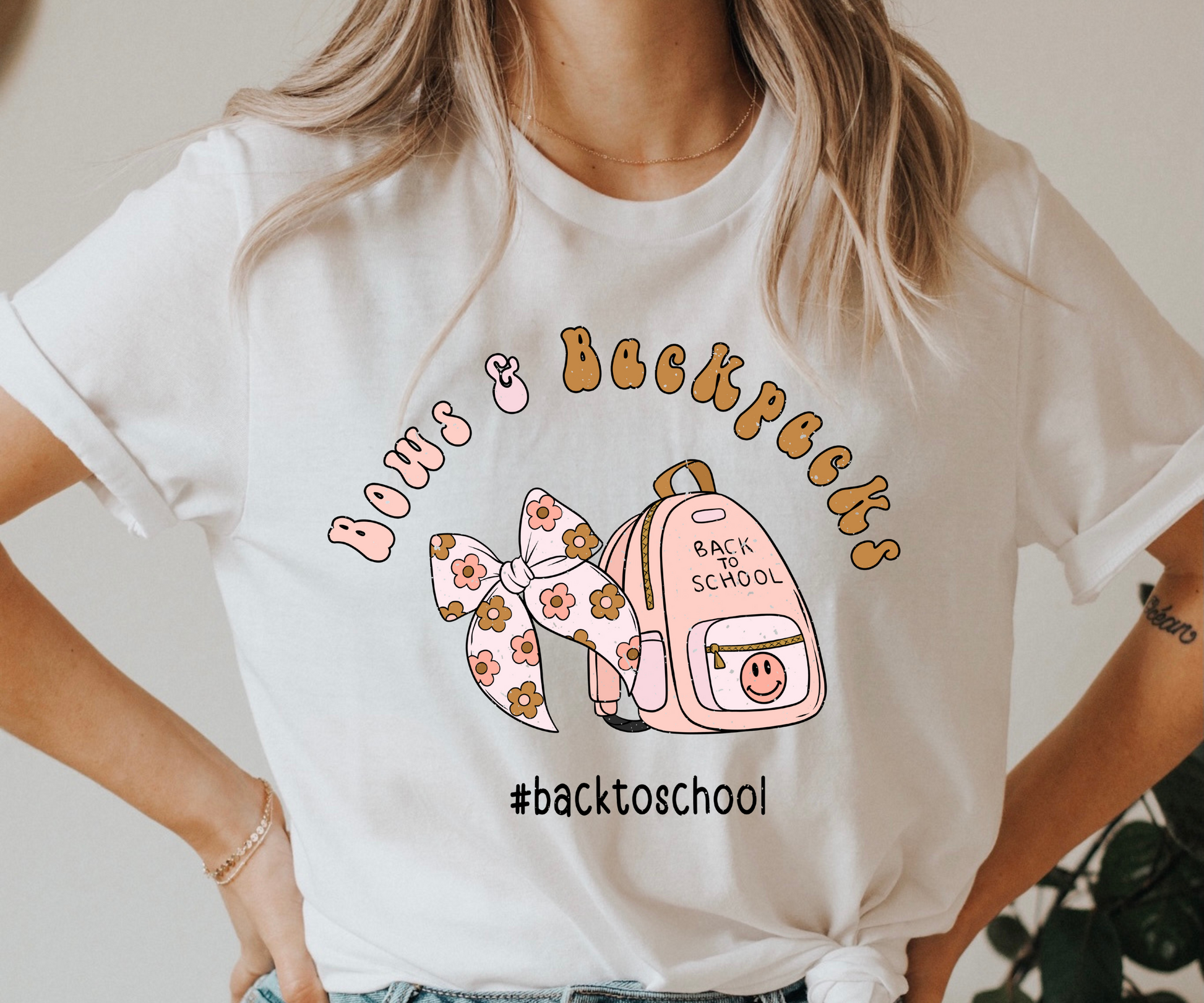 Books and Bows Teacher Retro T Shirt