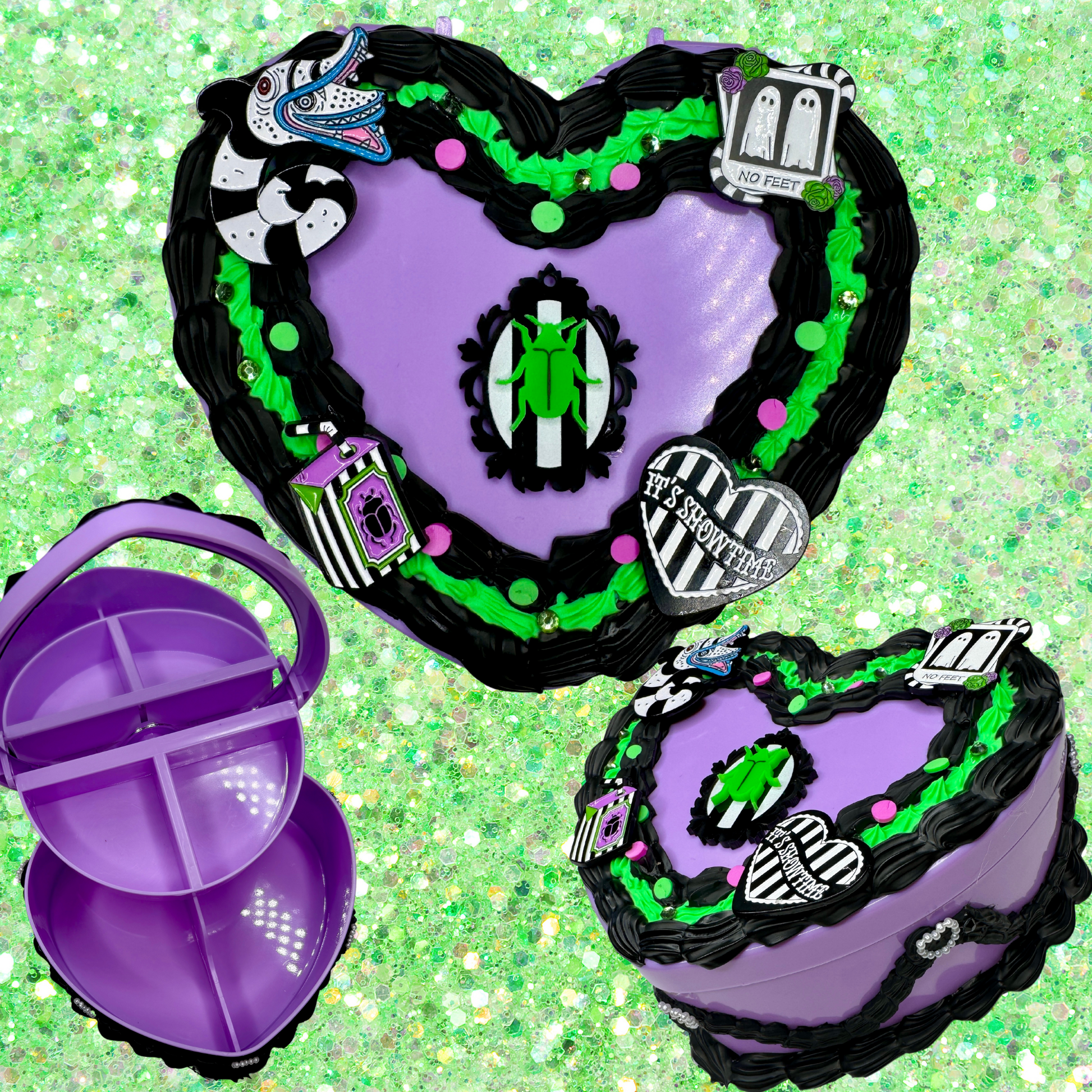Purple and Green Fake Cake Heart Jewelry / Trinket Storage Box