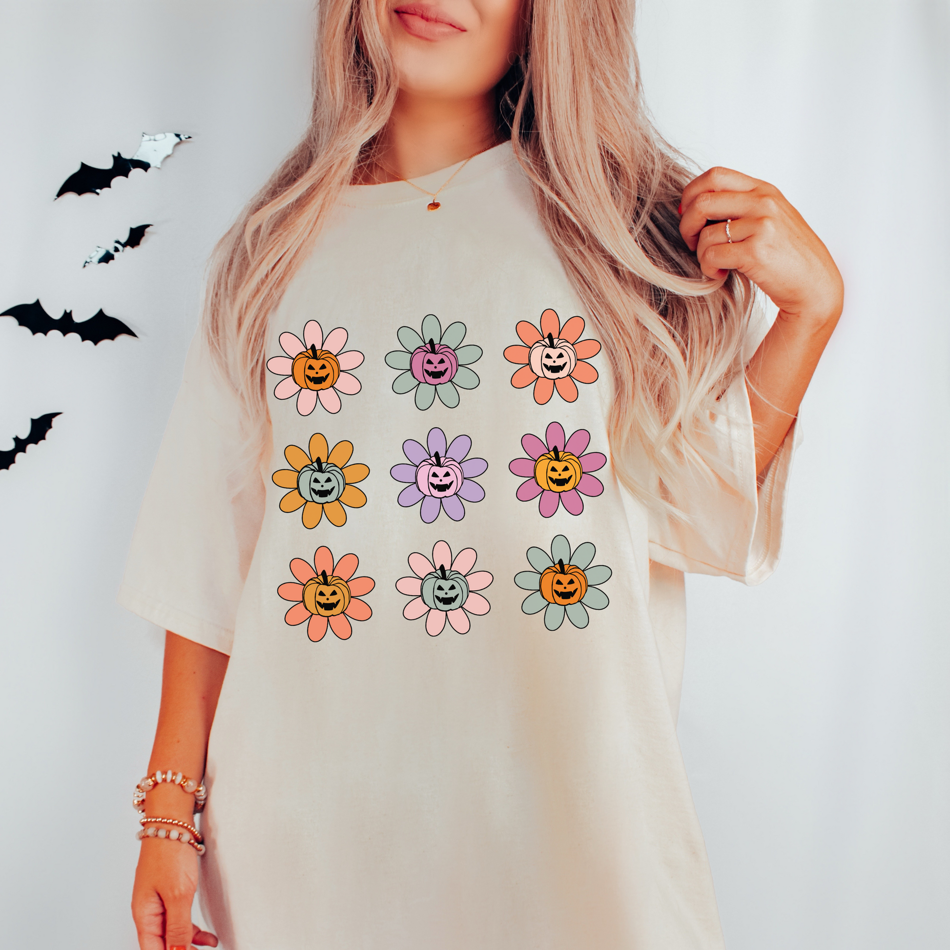 Retro Pumpkin Flowers T Shirt