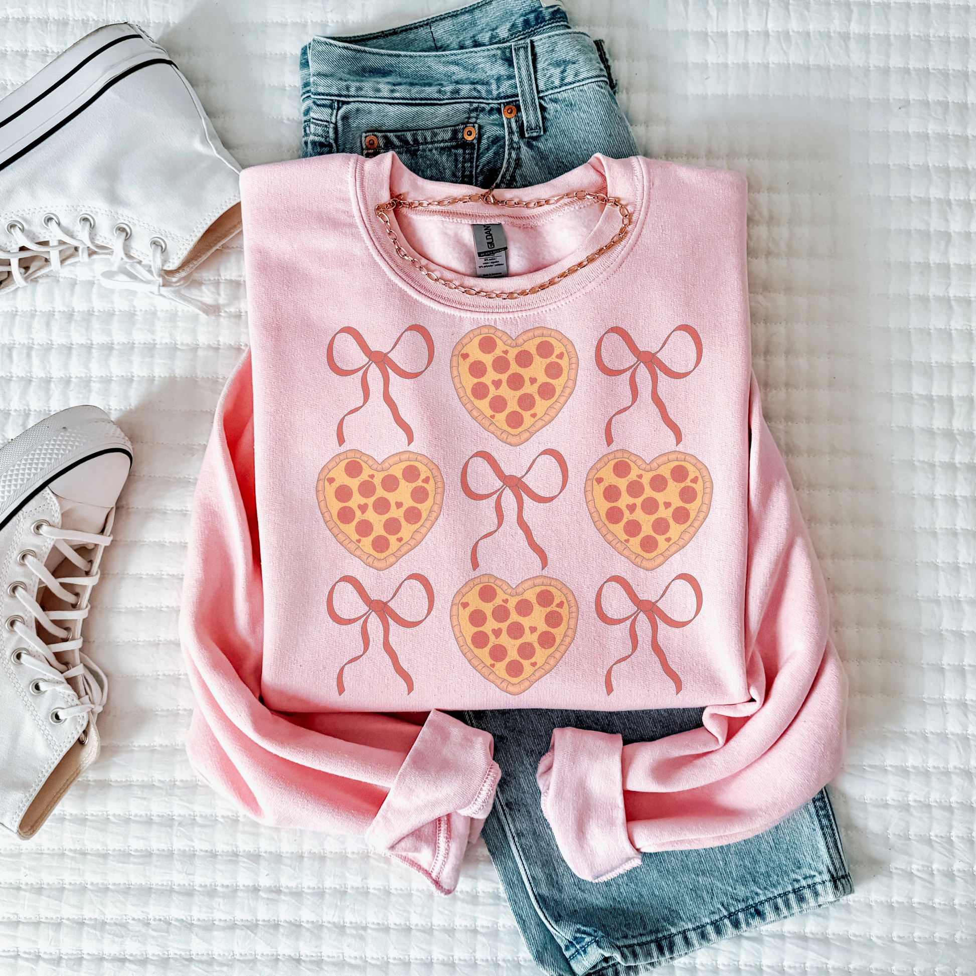 Pizza and Bows Retro Sweatshirt or T Shirt